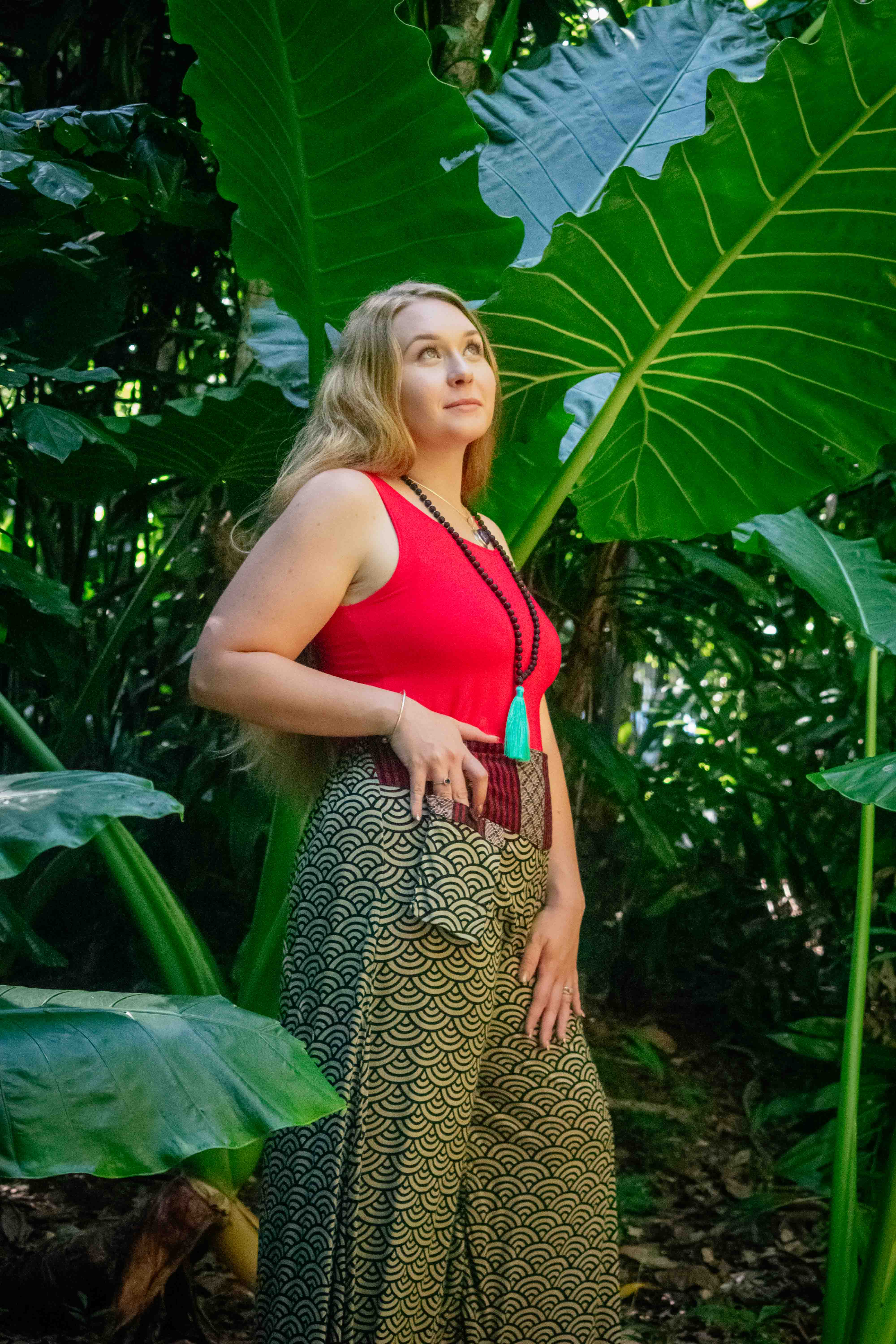 Our comfortable and groovy "Cinnamon” pants are now available in a wonderful, new, striking geometric print evocative of ancient, exotic oriental art. Elegant and restrained yet flowy and funky, they are practical enough for everyday wear, boasting great coverage, a flattering yet relaxed fit and pocket. We are sure they will soon be your wardrobe favourite, whatever the event. Also available in a durable and cool, Cotton range they are great for travel and just everyday adventures.