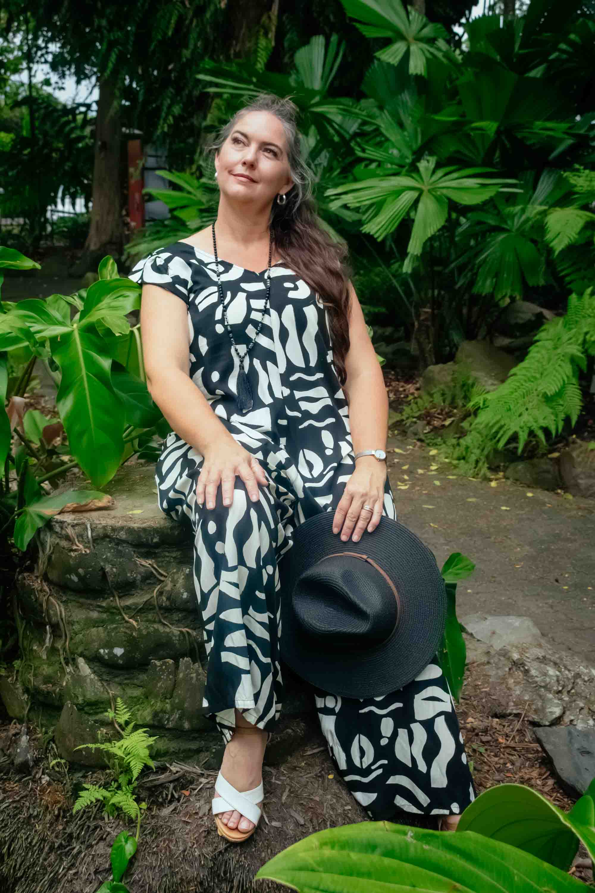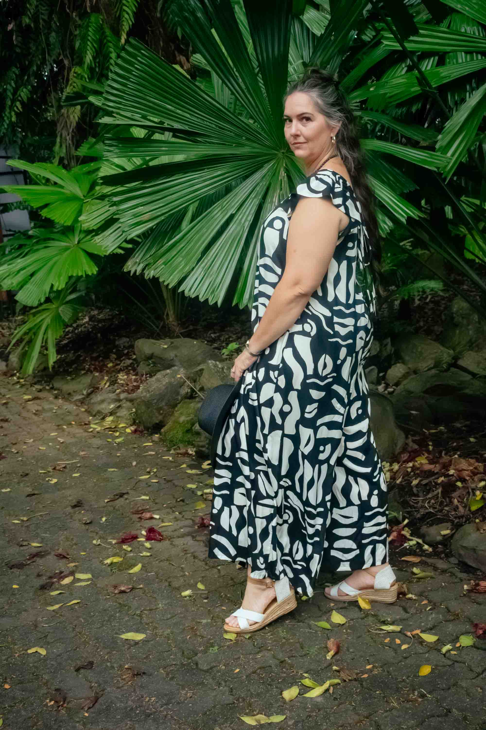 Striking, stylish, and effortlessly feminine, our Divinity Pantsuit – Zulu Black brings modern boho charm to a sleek, relaxed silhouette. Crafted from cool, lightweight Rayon, it flows beautifully in a loose linear shape that flatters and lengthens the figure. The Zulu Black print features a deep Black background with a Cream abstract pattern, creating a bold yet wearable contrast. Finished with soft flutter sleeves, a V-neckline, and back tie detailing, this free-size design shifts seamlessly from casual lunches to evening cocktails with simple changes of accessories. A versatile one-piece that celebrates comfort, confidence, and expressive boho style.