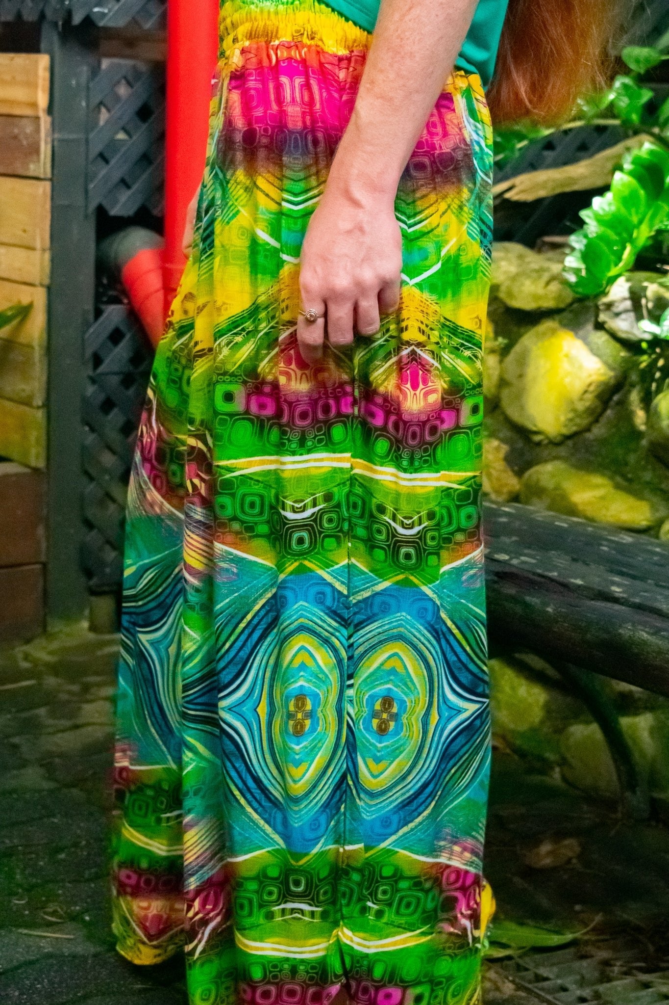 Seen here in our latest, bold and funky "Ripple” pattern in a riot of kaleidoscopic colour comprised of sunshiney yellow, popping pink, bright blue and white with vivid accents of black and green. Our "Fern” pants are perfect for travel and everyday wear and you'll always be relaxed, comfortable, colourful and stylish. With a soft, shirred waist and generously cut pant leg finished with a gentle curve they are suited to both the more petite or curvier and made with a breathable Rayon fabric. Team them with either our modern and vibrant "Desire” tops or our fun and youthful "Luna” crop.