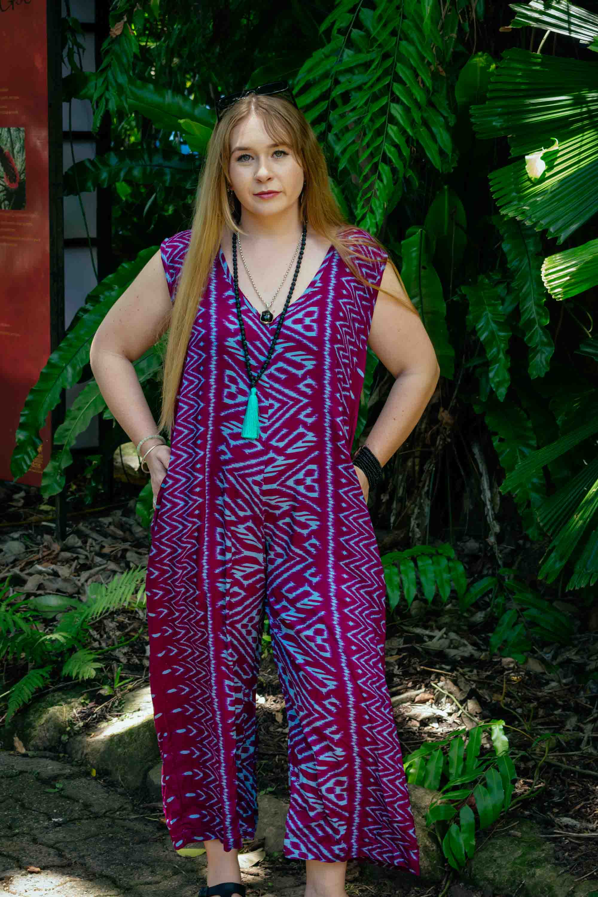 Vibrant, expressive, and beautifully flattering, our Tamarind Jumpsuit – Aztec Magenta is designed to stand out with confidence and colour. The striking geometric print in rich Magenta tones brings a bold energy, while the linear pattern creates a lengthening, sculpting effect through the body. Crafted from cool, lightweight Rayon, this jumpsuit feels breathable and effortless to wear, finished with practical pockets for everyday ease. Style it with wedges, statement jewellery, or a belt for festivals, garden parties, or relaxed summer occasions.