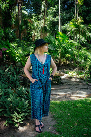 Fresh, striking, and effortlessly flattering, our Tamarind Jumpsuit – Aztec Teal combines a sleek silhouette with a bold geometric print in rich Teal tones. The linear design enhances the shape while keeping the fit relaxed and easy to wear. Crafted from cool, lightweight Rayon, this jumpsuit feels breathable and soft against the skin, with practical pockets adding everyday functionality. Style it with wedges, a belt, or statement accessories for festivals, garden parties, or relaxed summer occasions.