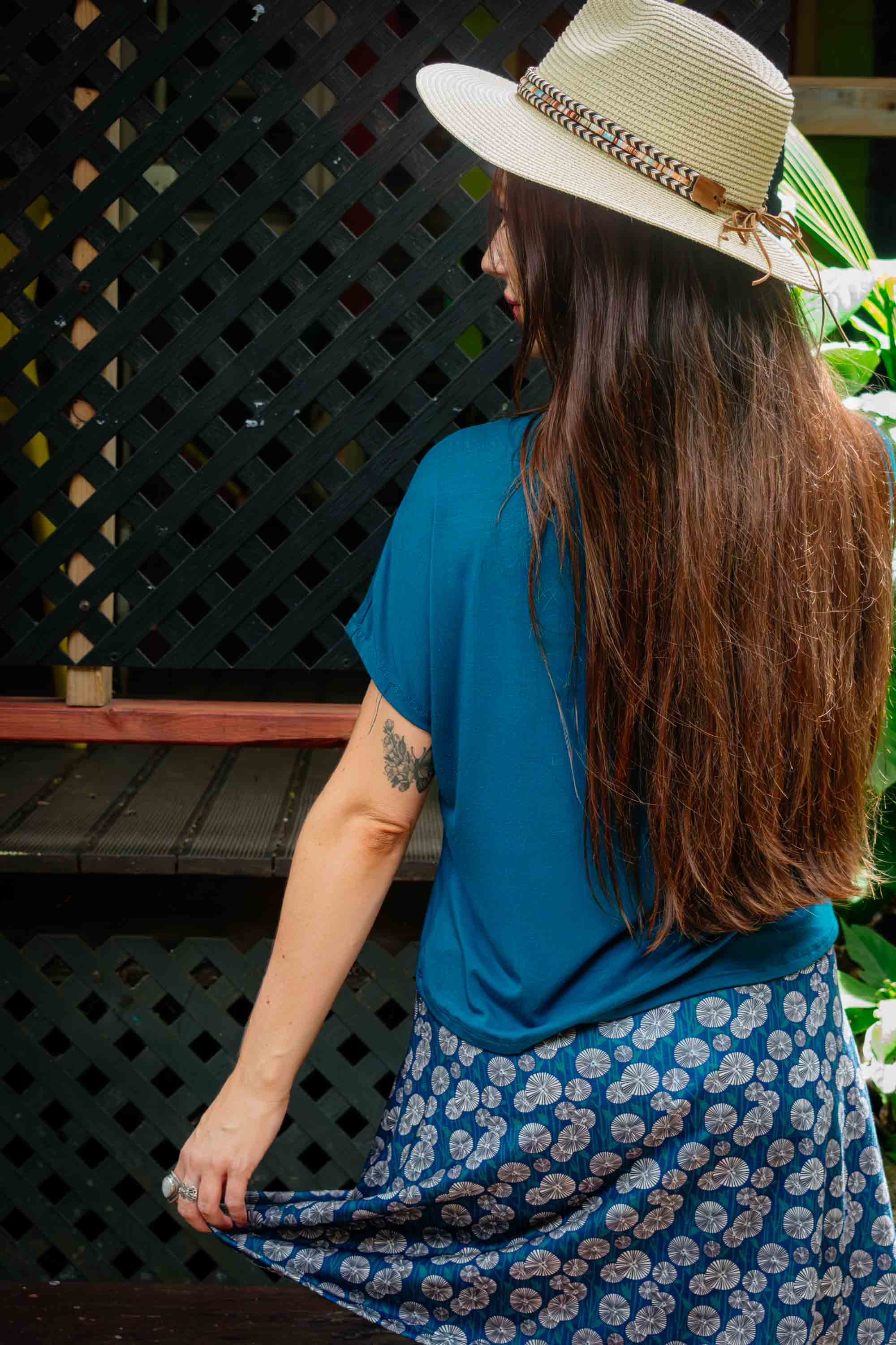 Soft, cute, and full of breezy charm, our Jamaica Short Skirt – Dandelion Navy brings a playful touch to everyday summer styling. The Dandelion Navy print features a deep Navy base scattered with delicate White dandelion flowers, lifted by fresh Green stems that soften the darkness and create a subtle, airy feel. Designed in our cheeky short A-line shape, it includes a soft, stretchy Black waistband for all-day comfort and easy movement. Cool, comfy, and versatile, it pairs beautifully with tanks, tees, and relaxed boho tops for effortless warm-weather dressing.