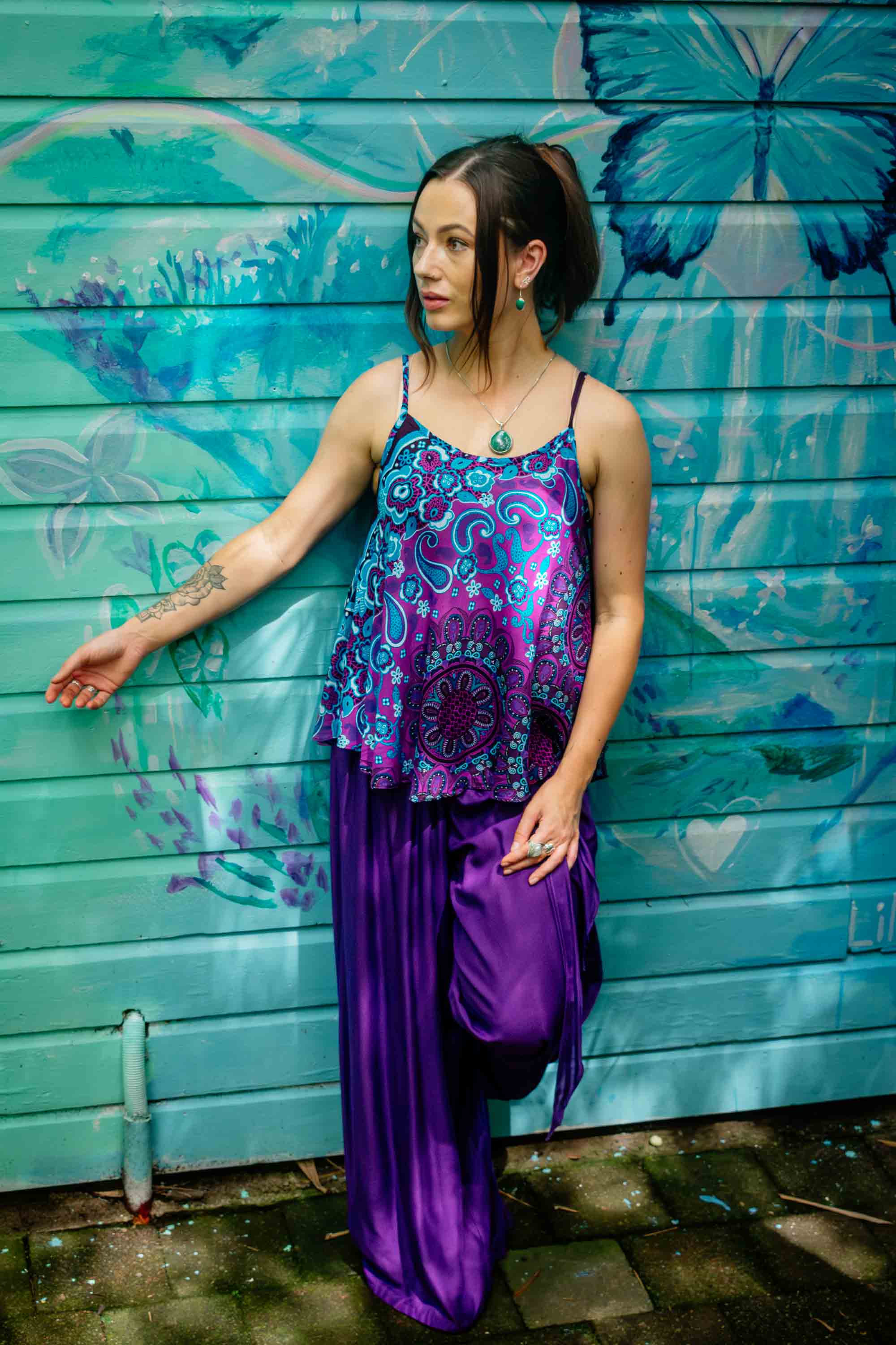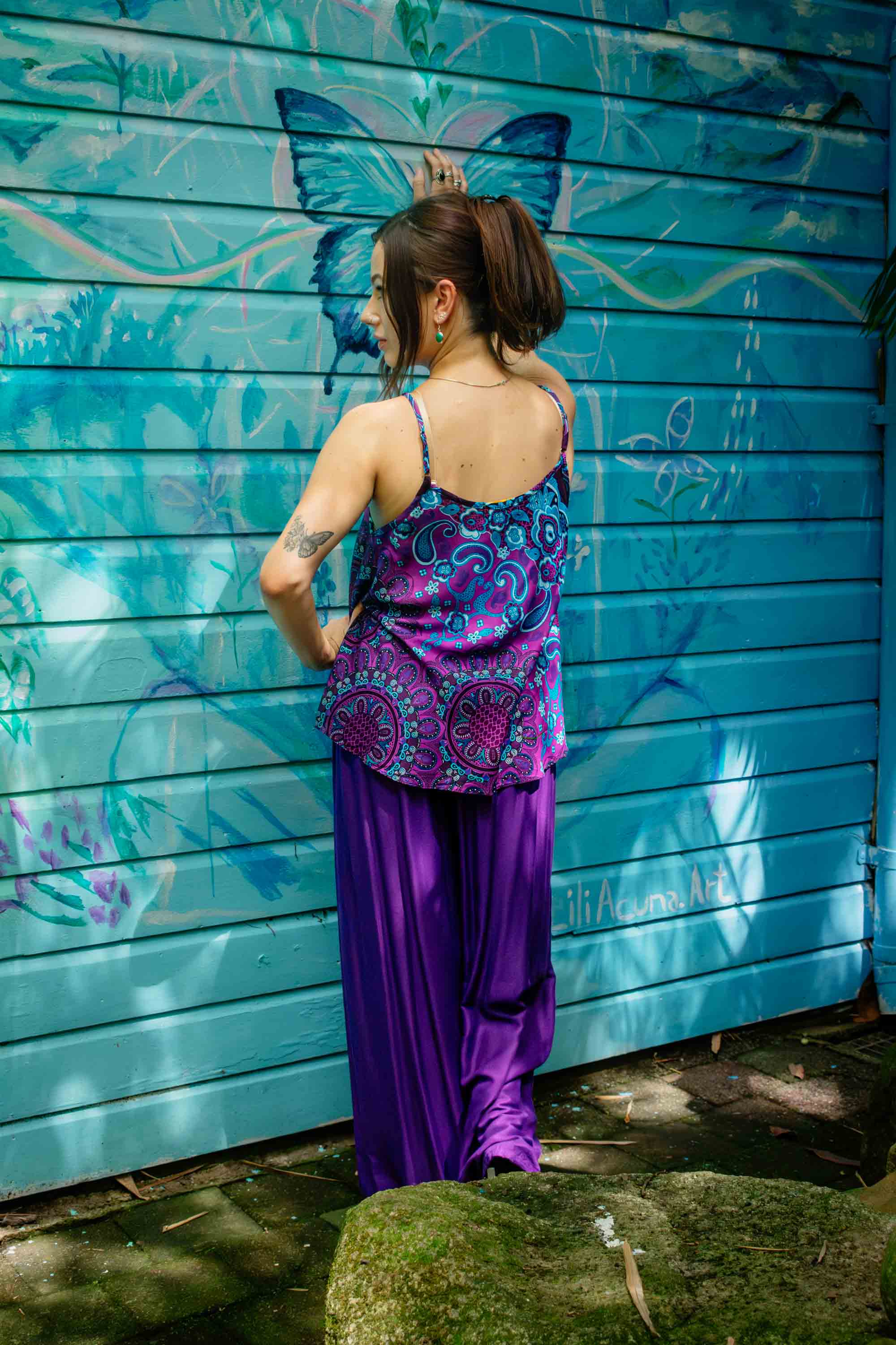 Soft, airy, and beautifully patterned, our Corvinia Top – Flirt Dark Blue blends easy comfort with expressive boho charm. Crafted from lightweight, breathable Rayon, it floats gently with a shaped hem that adds subtle movement. The Flirt Dark Blue print mixes mandala, paisley, and floral elements in deep Blue tones, creating a rich, versatile look ideal for warm days. Finished with adjustable straps for a personalised fit, this relaxed top pairs effortlessly with denim, shorts, or wide-leg pants for effortless summer styling.