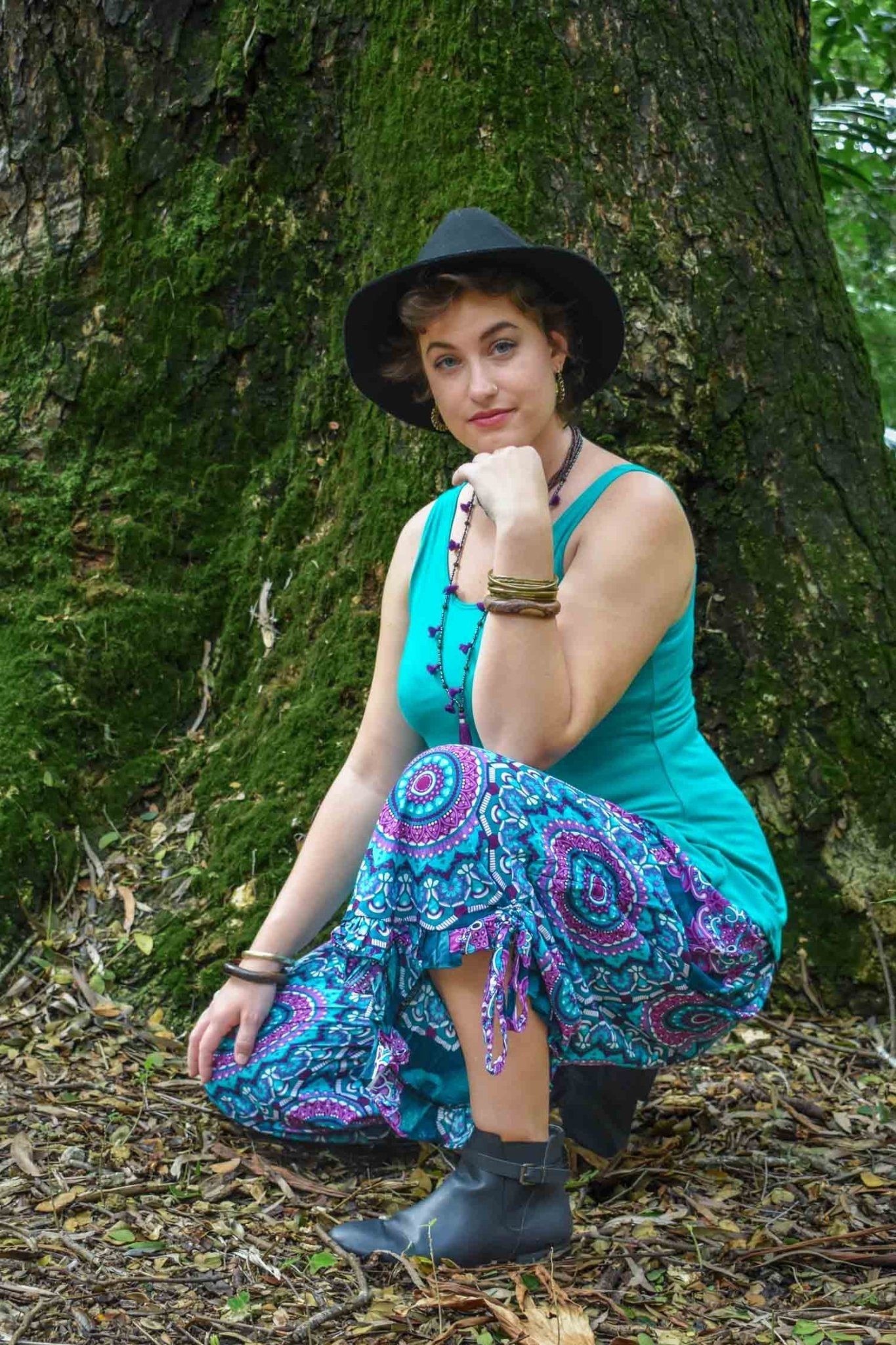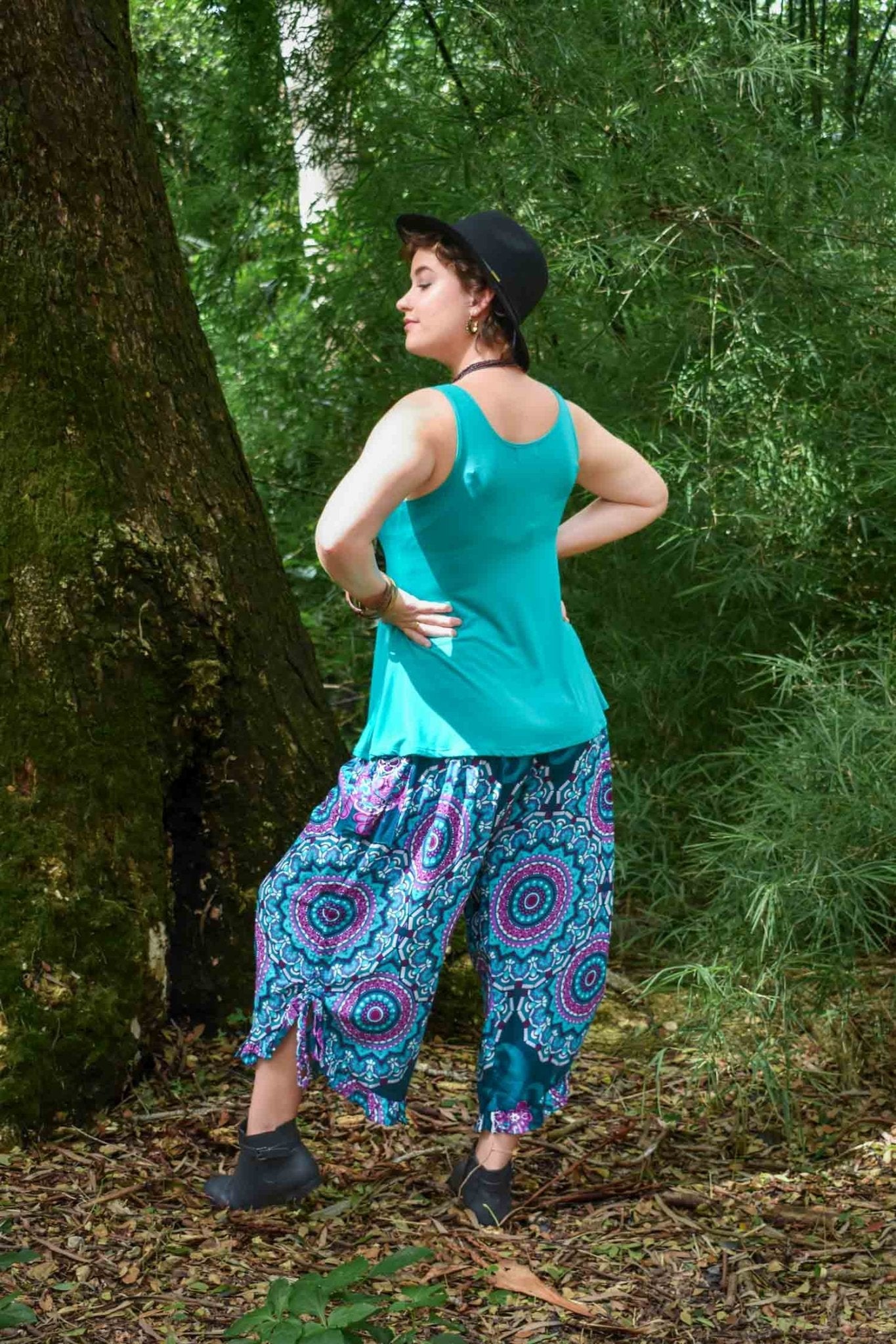 Relaxed fitting, funky and free flowing. Our "Passport” pants will have you travelling with ease and style, whether, just in your day to day or worldwide. Soft shirring on the waist, deep pockets and a generous fit with a tie bottom will make this a first-class choice for many women especially the fuller figured. Wear it with a large loose top like our lovely new "Raine” top for the ultimate in cool comfort, or change it up with a cute little top, like our easy fitting "Evelyn” singlet. Available in an eclectic range of colours and patterns as well as a classic plain Black or White option and seen here in an eye-catching blend of rich Jadey green and beautiful tones of Lilac and Lavender.