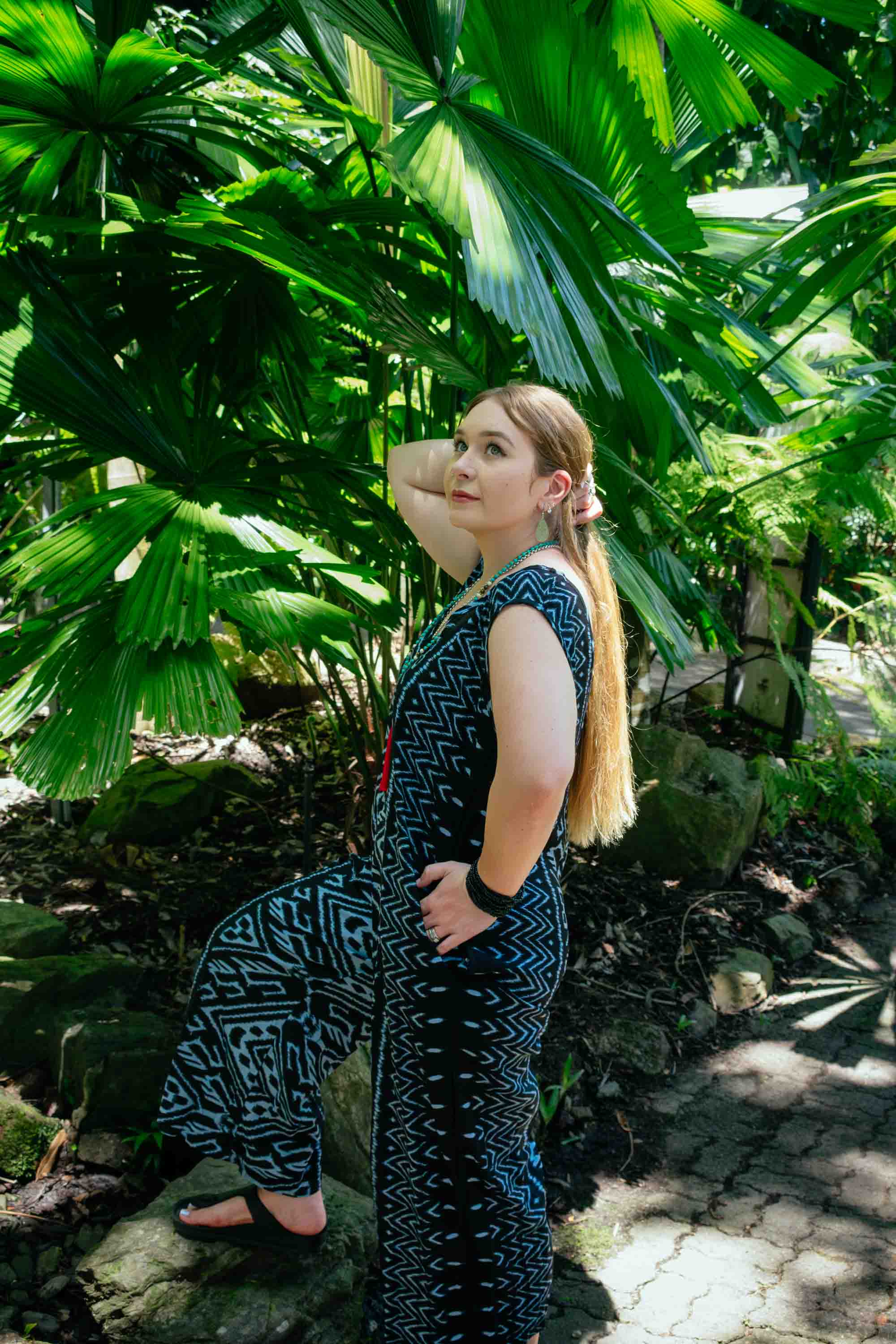 Striking, sophisticated, and effortlessly wearable, our Tamarind Jumpsuit – Aztec Black pairs a sleek, flattering silhouette with a bold geometric print in classic Black tones. The linear pattern creates a lengthening effect through the body, while the relaxed shape keeps it comfortable and easy to wear. Crafted from cool, lightweight Rayon, this jumpsuit feels breathable and soft against the skin, with practical pockets adding everyday ease. Style it with wedges, statement jewellery, or a belt for festivals, evenings out, or relaxed summer gatherings.